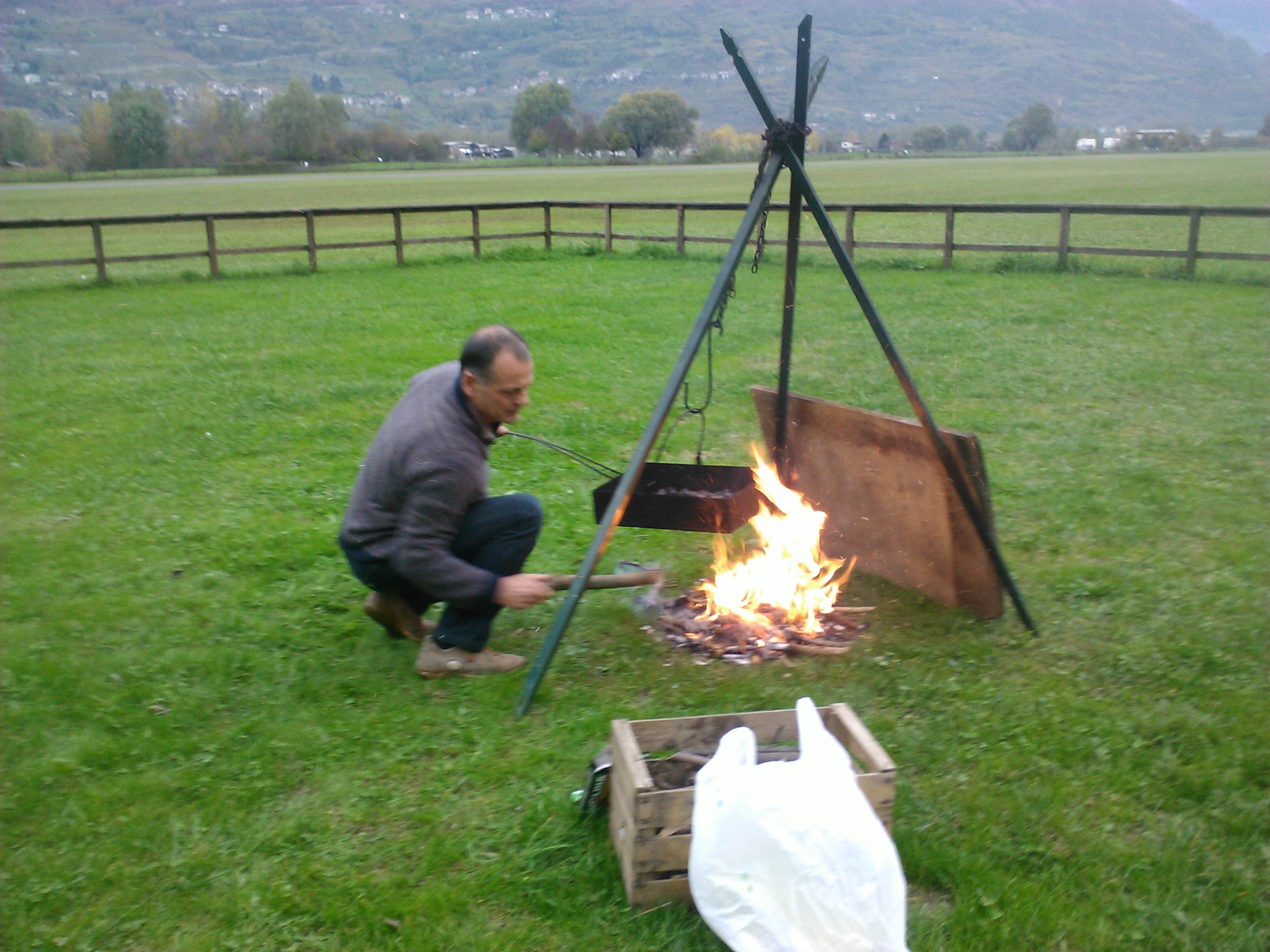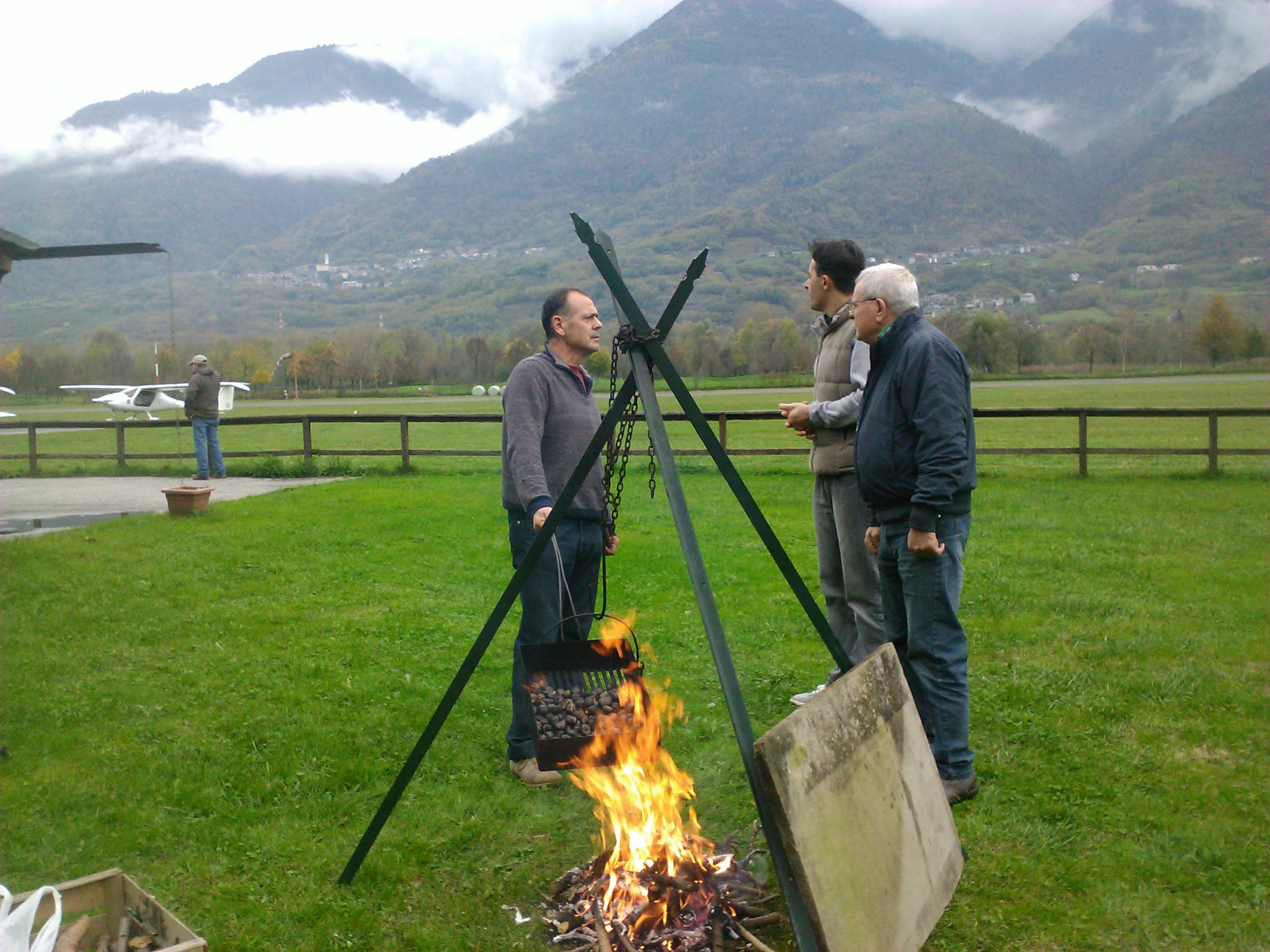 tempo di castagne in aeroporto. Puntuale, alle 15,00, fuoco acceso e sotto con buon vino e caldarroste.
