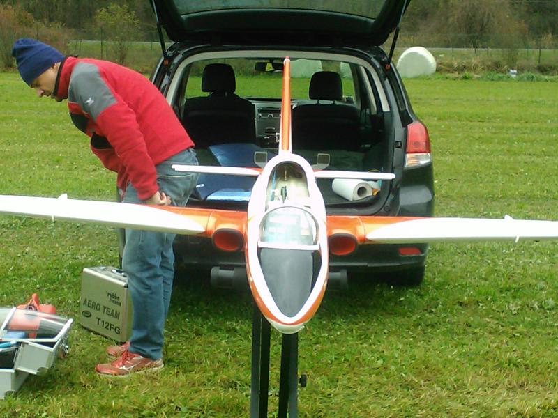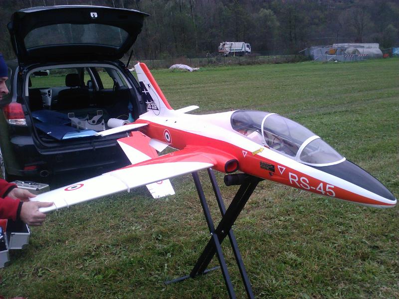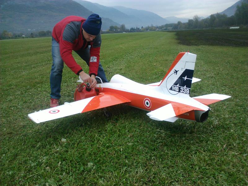 Beh, vedere l’ impegno che taluni soci del GAV mettono nella passione, gratifica e corrobora. Parecchio, per quello che mi riguarda. Così l’ altro giorno mi chiama Michele, che sta approfondendo l’aeromodellismo con propulsione a turbina, ergo, in pratica, riproduzioni di jet militari. Possiede infatti un Aermacchi MB339 nella livrea bianco-arancio del Reparto Sperimentale dell’ AMI 2m x 2m, 15 kg di peso, turbina JETCAT 120. Ha volato alcune volte a Ghisalba (BG), aiutato dai guru del settore, però è lontano, significa impegnare tutte le volte un giorno intero. Mi chiede se fosse possibile volare a LILO (d’ora in poi, “casa”). Presto fatto, mi coordino col grande capo, Alessandro Paganoni, il quale mi concede massima disponibilità. Due vincoli: la mia presenza al campo per tutta la durata delle prove e contatto radio continuo. Bene , fatta. Si decide per giovedì mattina ore 10,00.